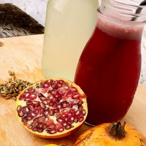 En esta sección encontrarás algunas recetas para hacer zumos y licuados de frutas de mucha semilla, como la uva, la granada, la grosella, las moras… o infusiones con raíz de jengibre, jugos de flores…