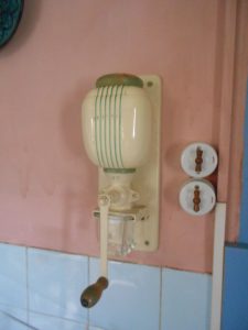 Two months later, by chance, in a second hand market, we found a manual wall grinder. Of course, we bought it and tried it out.