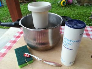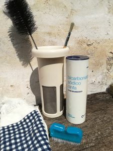 We didn’t feel like using harsh treatments would be best to use in such a kitchen tool, so we decided to go for a more natural, traditional remedy: baking soda. It yields such brillaint results!