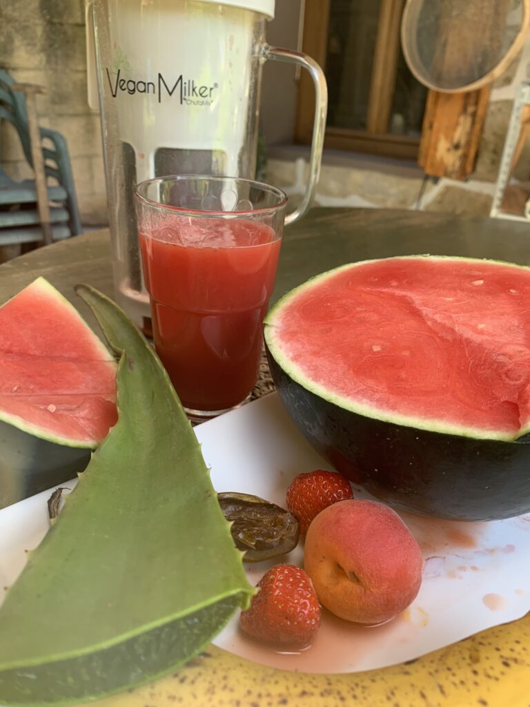 Il succo di anguria e aloe vera è una bevanda ideale per le giornate calde e soleggiate. La scelta dell’anguria e dell’aloe come ingredienti non è stata casuale.
