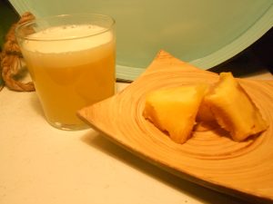 Con il cuore centrale dell’ananas si ottiene un bicchiere di succo di frutta.